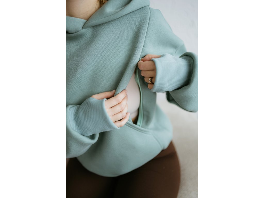 Pohodlná a stylová kojicí mikina s praktickými předními zipy, klokaní kapsou a příjemně velkou kapucí.